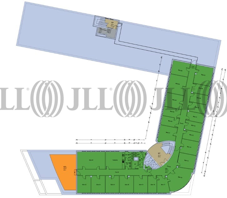 Der fünfgeschossige Bürokomplex wurde im Jahr 1996 erbaut und verfügt im Innenbereich über mehrere Stellplätze. Weiterhin besteht die Möglichkeit, zwei separate Flächen im Untergeschoss zusätzlich anzumieten. Diese verfügen über jeweils ca. 400m² und ein Aktenschrank-System. Dieses kann bei Bedarf natürlich auch ausgebaut werden.