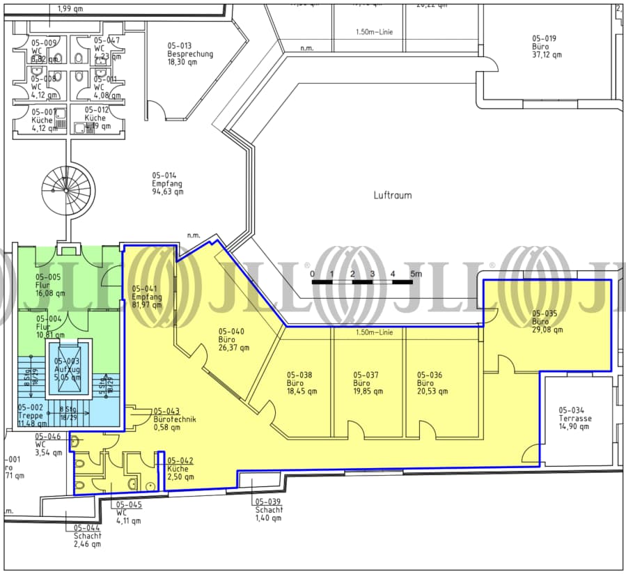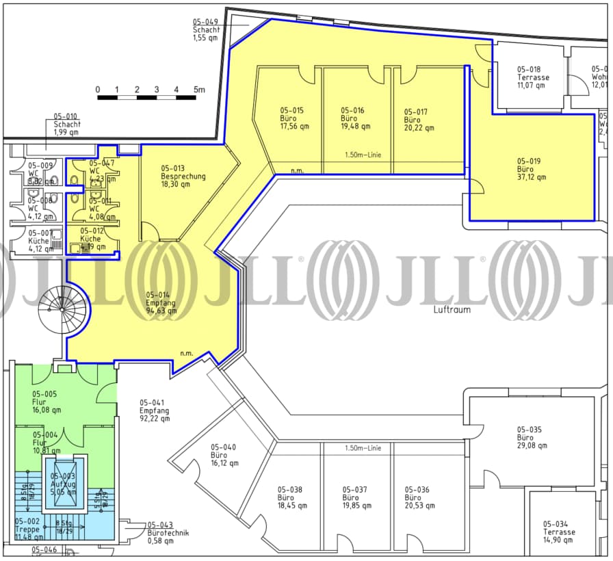 Im 1. bis 3. Obergeschoss stehen modern ausgestattete und klimatisierte Flächen zur Verfügung. Diese Etagen zeichnen sich durch eine offene Struktur aus, die sich ideal für Open-Space-Konzepte eignet. Die Flächen gruppieren sich um den historischen Innenhof, was für eine einzigartige Atmosphäre sorgt. Das 5. Obergeschoss bietet zusätzlich zwei attraktive Büroflächen, die sich durch ihre besondere Lage und Ausstattung auszeichnen.