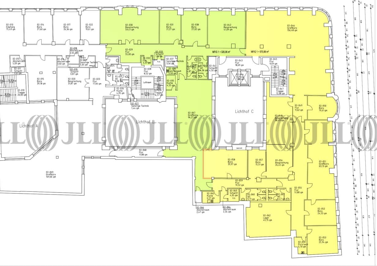 Die zur Vermietung stehenden Büroflächen verteilen sich über mehrere Etagen des Gebäudes und bieten verschiedene Optionen für potenzielle Mieter: