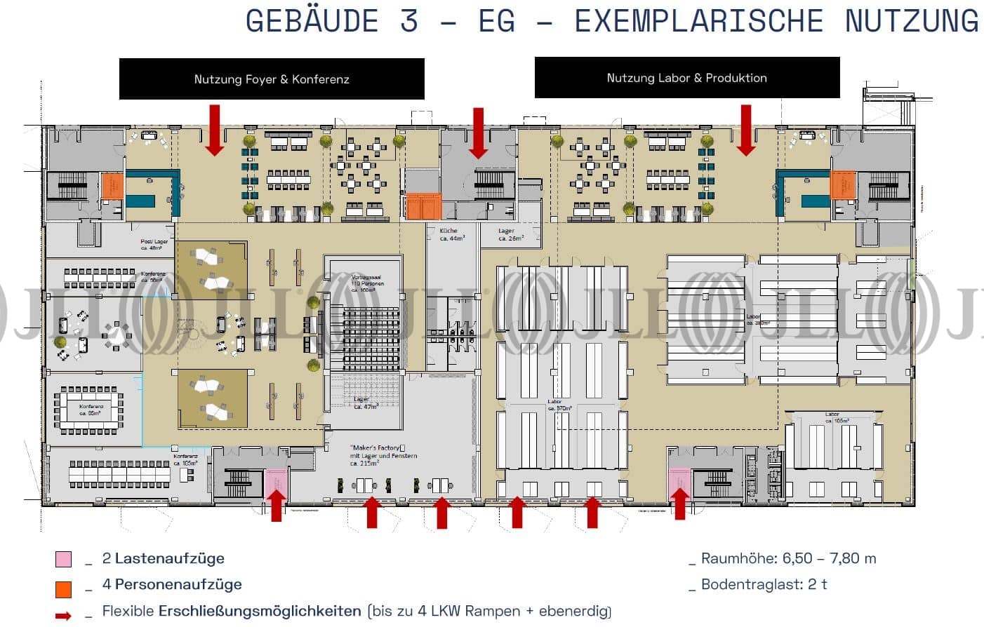 Auf dem rund 28.000 m² großen Grundstück inmitten von Berlin befinden sich ein Bürogebäude mit ca. 3.500 m² Fläche sowie eine ca. 13.000 m² große Kaltlagerhalle. Auf einer geplanten Fläche von rund 40.000 m² sollen neben flexiblen Flächen für Produktion, Service und Lager auch Büroflächen entstehen. Um langfristig und flexibel nutzbare Gebäudestrukturen zu schaffen sowie eine Vielzahl von Verwendungsmöglichkeiten zu gewährleisten, werden auch die oberen Etagen mit erhöhter Decktraglast und gleichzeitig großzügiger Raumhöhe geplant.