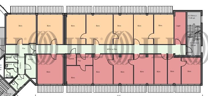 Das bestehende sechsgeschossige Bürogebäude verfügt über 2 Büroeingänge und umfasst insgesamt ca. 6.000 m² Bürofläche. Die Flächen verfügen über eine gute technische Ausstattung und können flexibel an die Mieterwünsche angepasst werden.