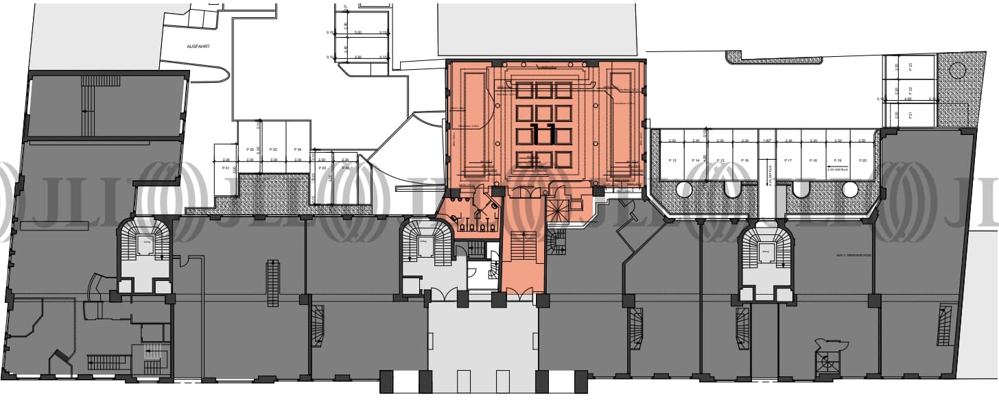 Die Mietflächen befinden sich im EG, 4. und 5. Obergeschoss des repräsentativen Baudenkmals und sind über Aufzüge und die Treppenhäuser erschlossen. Aktuell liegen abwechslungsreiche Bürostrukturen mit unterschiedlich großen Räumen bzw. offenen Flächen vor. Der Mietbereich im 5. OG wurde erst unlängst saniert. Stellplätze stehen in der hauseigenen Tiefgarage zur Verfügung.