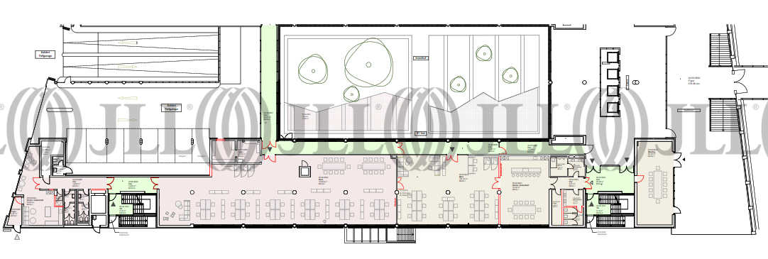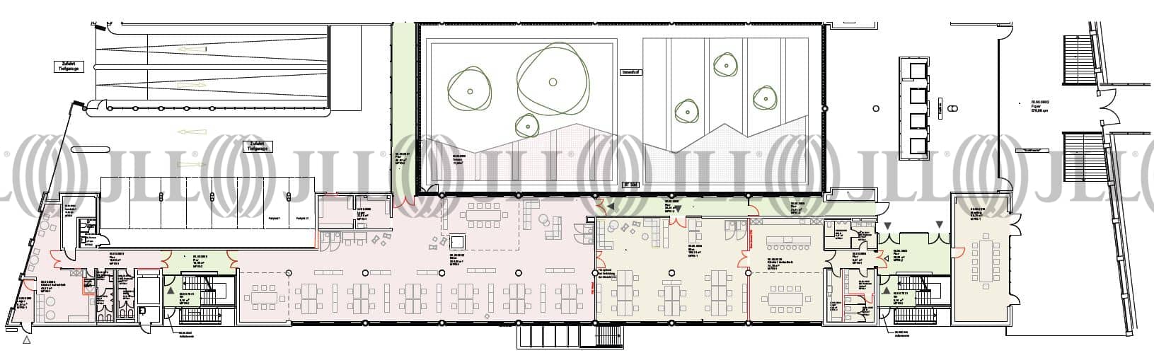 Die repräsentative Liegenschaft befindet sich direkt am Innenstadtring und überzeugt durch beste Visibilität und markante Architektur. Im Erdgeschoss des südlichen Gebäudeteils stehen ca. 1.000 m² zur Verfügung. Die Flächen besitzen einen direkten Zugang zum begrünten Innenhof sowie zum Auditorium. Eine Nutzung durch den zukünftigen Mieter ist möglich. Durch eine Teilung der Mietfläche könnten separate Einheiten mit ca. 430 m² und ca. 570 m² Fläche entstehen. Für die mögliche Teilung der Fläche hat der Vermieter zwei Varianten erarbeitet. Die Anmietung von Stellplätzen ist in der anliegenden Tiefgarage möglich.