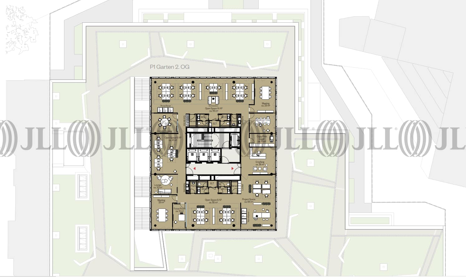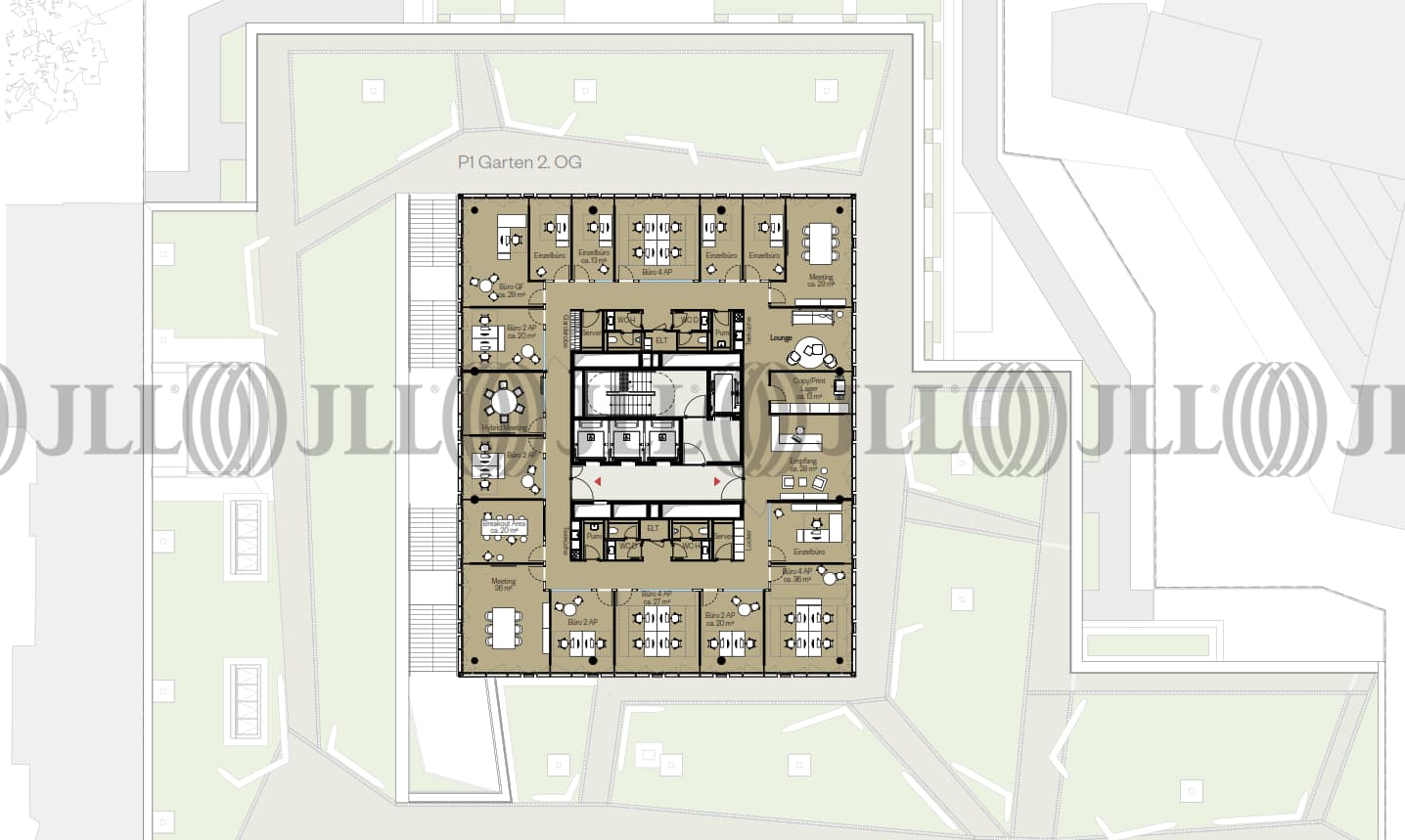 Das Objekt besticht durch ein innovatives Innenraumdesign, das Modernität mit Natürlichkeit, Nachhaltigkeit und hoher Aufenthaltsqualität harmonisch verbindet. Die Dachfläche des zweigeschossigen Sockelbaus beherbergt einen Erholungsgarten, der zum Verweilen einlädt. Ergänzt wird dies durch einen üppig begrünten Innenhof, zwei weitere großzügige Dachterrassen sowie vertikale Begrünungen an sämtlichen Außenwänden des hinteren Gebäudebereichs. Diese Elemente tragen nicht nur zur ästhetischen Aufwertung bei, sondern fördern auch das Wohlbefinden und die Umweltfreundlichkeit des gesamten Komplexes.