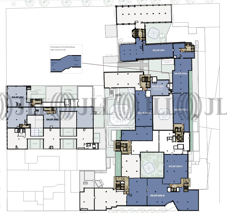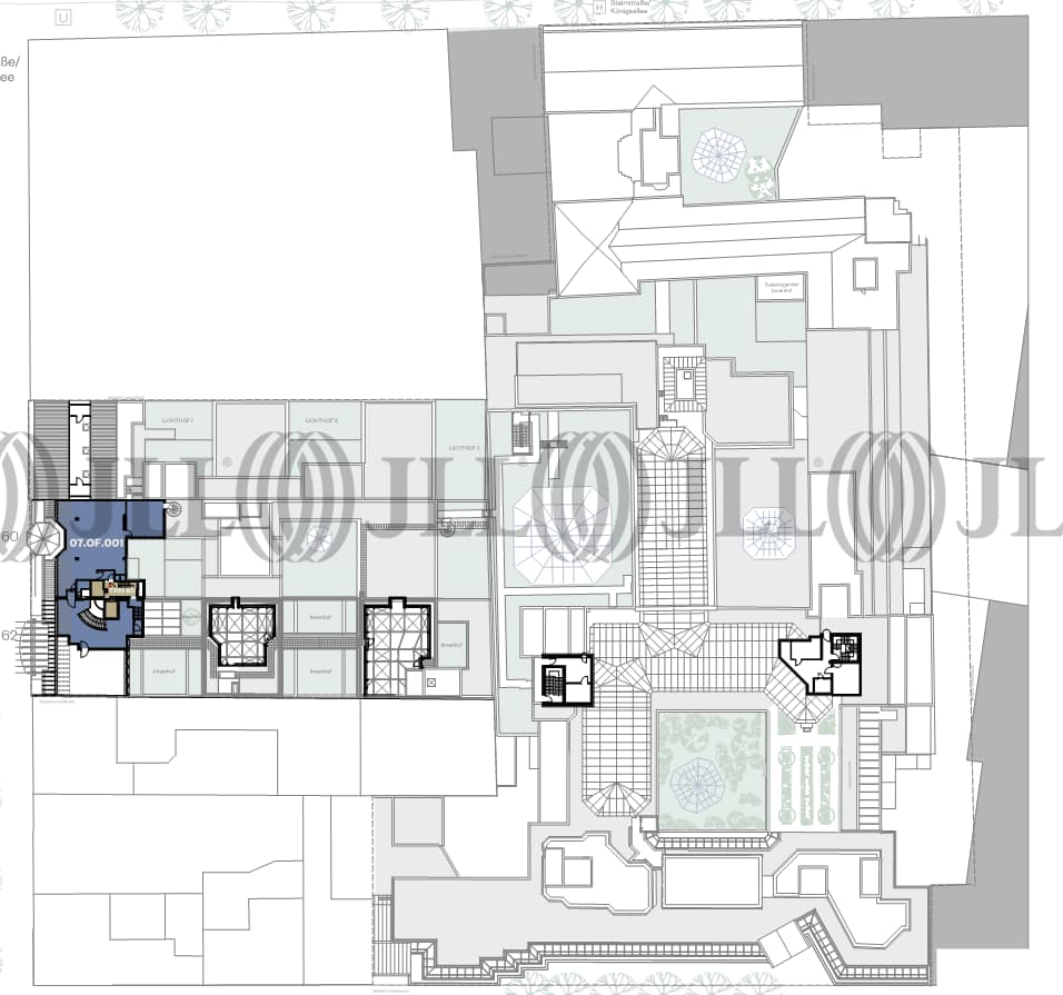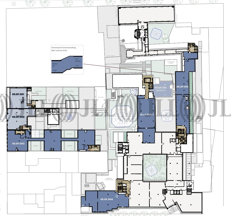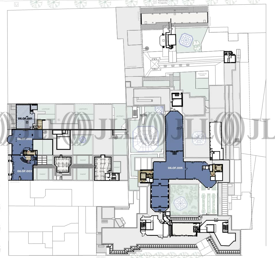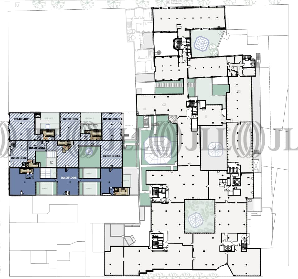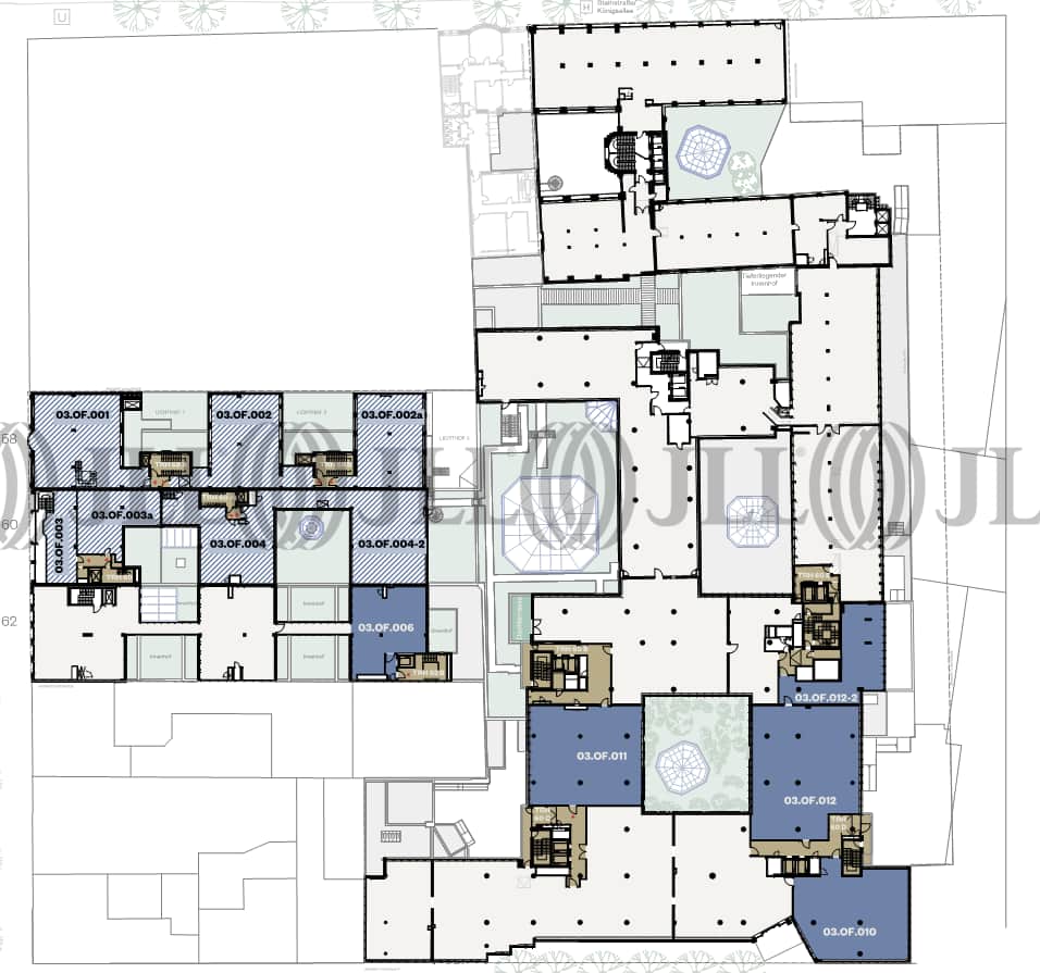 Die sehr unterschiedlich zu gestaltenden Büroflächen verfügen über verschiedene Raumtiefen, sodass jegliche Büroformen (Kombi-, Großraum- und Einzelbüro) dargestellt werden können. Die Kö-Höfe bieten durch ihre prominente Lage beste infrastrukturelle Voraussetzungen und zugleich die Möglichkeit einer eigenen Adressbildung. Die Büroflächen der Kö-Höfe werden derzeit umfassend saniert.