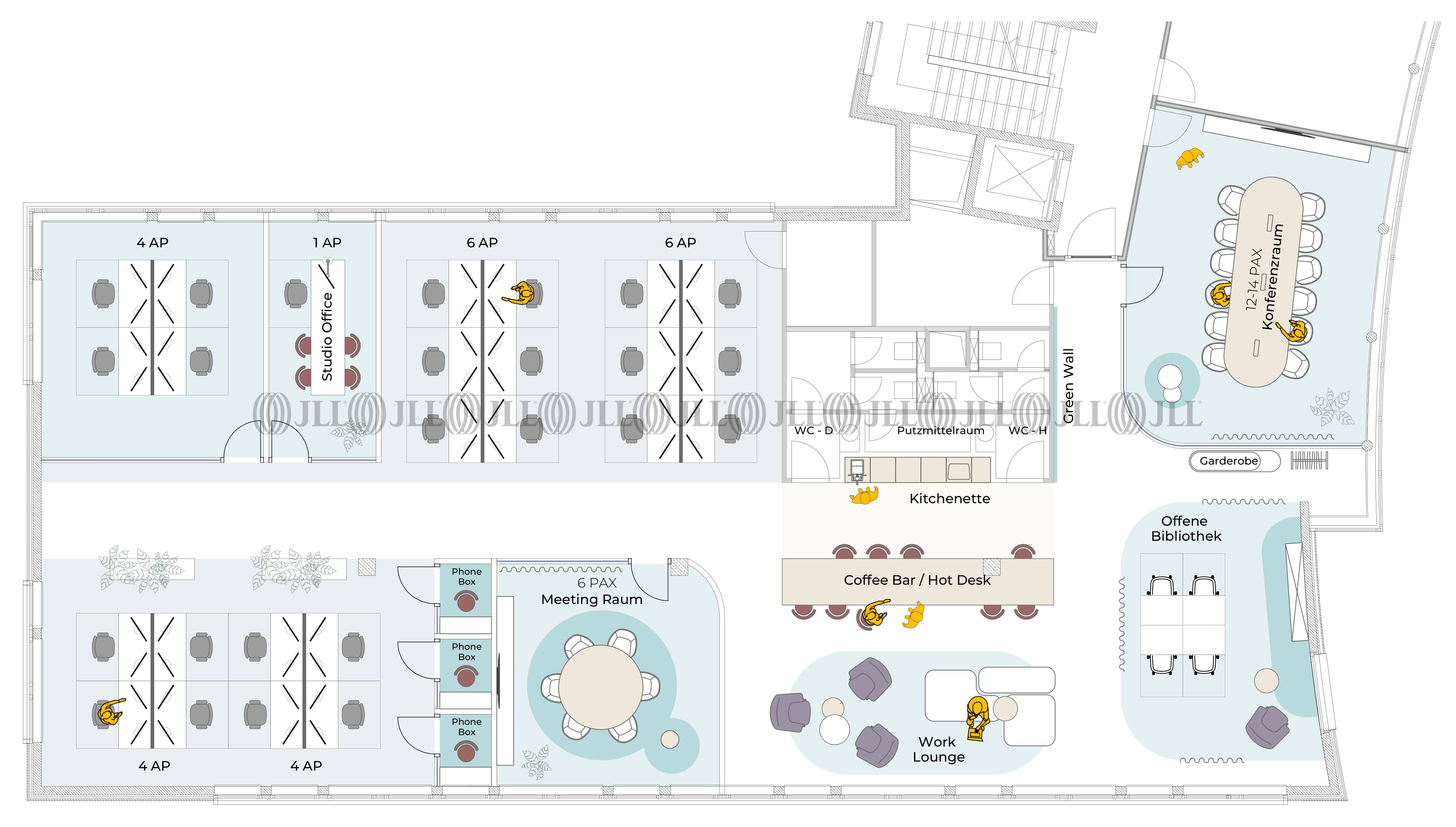 Die 6-geschossige Liegenschaft verfügt über einen zentralen Empfang sowie hochwertig ausgestattete Büroflächen. Durch eine großzügige Fensterfront gelangt viel Tageslicht in die Flächen, die sich nach Mieterwunsch flexibel aufteilen lassen.