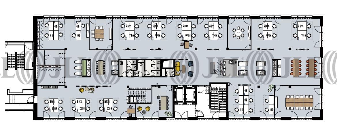 Optisch dem Bauteil A (Altbau) nachempfunden, entstand vor einigen Jahren der modern ausgestattete Bauteil B mit insgesamt 6.000 m² Bürofläche. Das 1. OG eignet sich ideal sowohl für eine klassische Büronutzung als auch für Ausstellungen im Showroombereich.