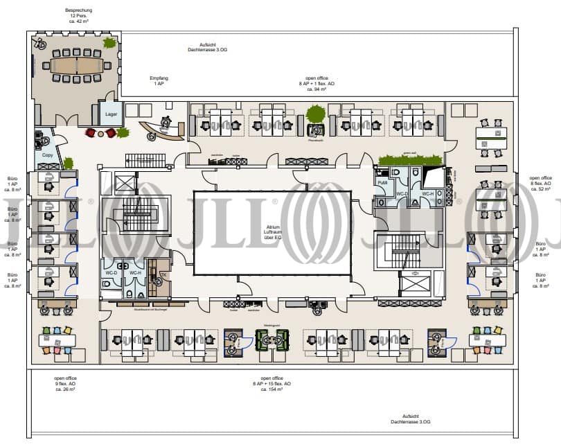 Das besondere Highlight dieses Objektes sind die großen Terrassen, die eine hohe Mitarbeiterzufriedenheit geradezu garantieren, die innenliegende Treppe, die einen schnellen Austausch zwischen den Etagen 2 bis 4 ermöglicht und das sehr moderne Erscheinungsbild der denkmalgeschützten Liegenschaft kombiniert mit dem äußerst repräsentativen Atrium. Das denkmalgeschützte Objekt aus dem Jahr 1900 wurde um die Jahrtausendwende kernsaniert und besteht aus fünf Voll- sowie einem Staffelgeschoss. Die Flächen verfügen über ausreichend Außen- sowie Tiefgaragenstellplätze.