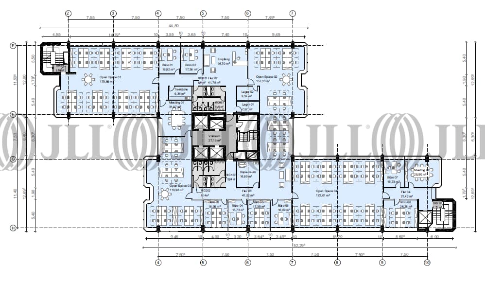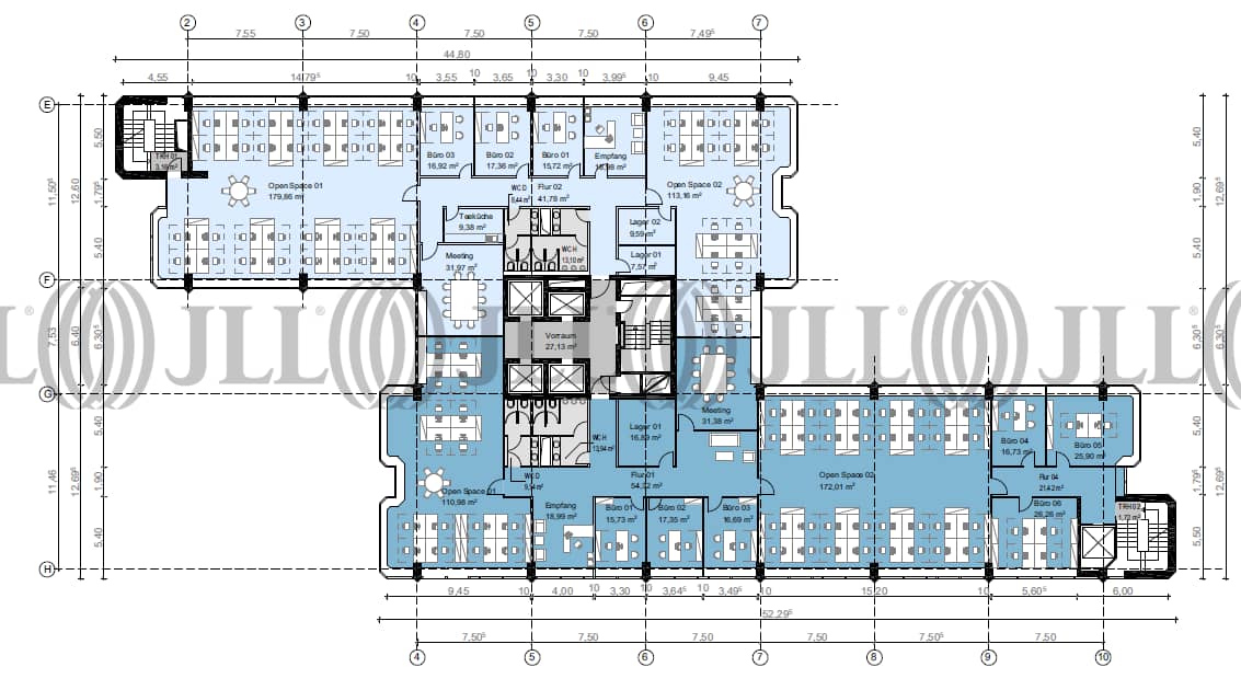 Der 14-geschossige Büroturm bietet mit seiner Regelgeschossgröße von ca. 1.120 m² pro Etage optimale Bedingungen, moderne Bürokonzepte auf einer Etage zu vereinen.