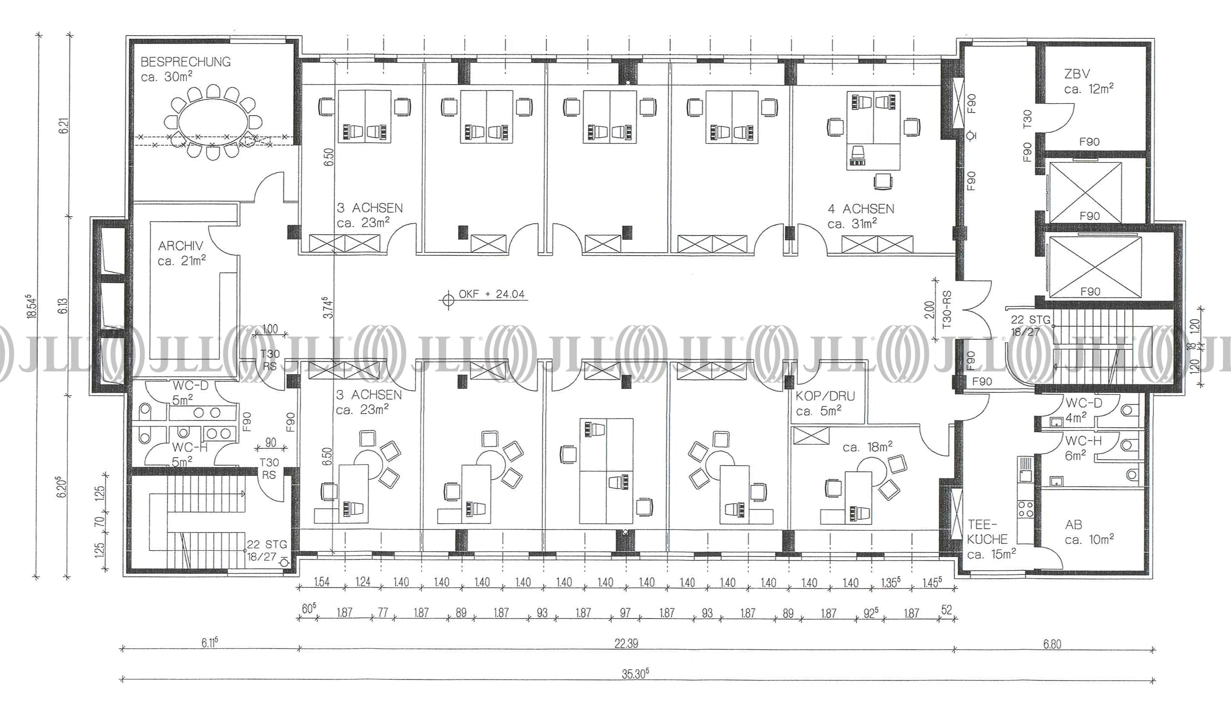 Die knapp 5.000 m² große Liegenschaft wurde 2005 kernsaniert. Eine etagenweise Anmietung ist problemlos möglich. Der Grundriss lässt eine flexible Nutzung der Büroflächen nach Mieterwunsch zu.