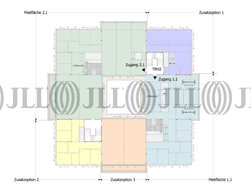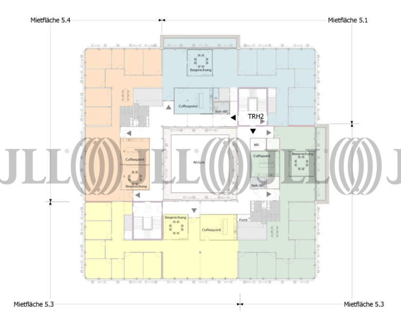 Der hochwertige Büroneubau verbindet modernes Arbeiten mit einem ansprechenden, naturnahen Umfeld. Die flexiblen Grundrisse ermöglichen vielfältige Nutzungsmöglichkeiten – von Open-Space-Flächen über klassische Zellenbüros und moderne Besprechungsräume bis hin zu informellen Bereichen wie Flex Lounges. So entstehen zeitgemäße Arbeitswelten, die sowohl fünfgeschossige konzentriertes Arbeiten als auch kreative Zusammenarbeit optimal unterstützen.