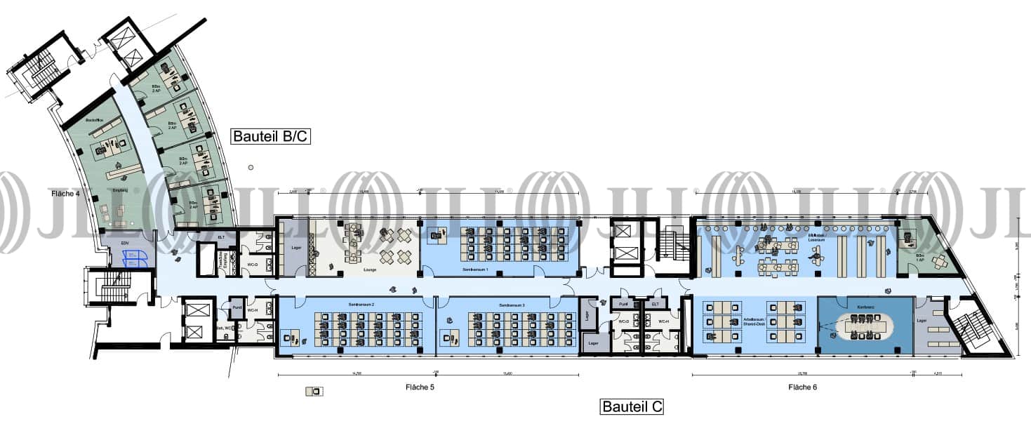 Ein sternförmiges architektonisches Highlight inmitten einer grünen Welt. Das Bürogebäude liegt im Nordwesten von Frankfurt am Main im Mertonviertel und bietet eine perfekte Work-Life-Balance. Neben der imposanten Eingangshalle befinden sich auf sieben Etagen flexible und leicht veränderbare Büroflächen.