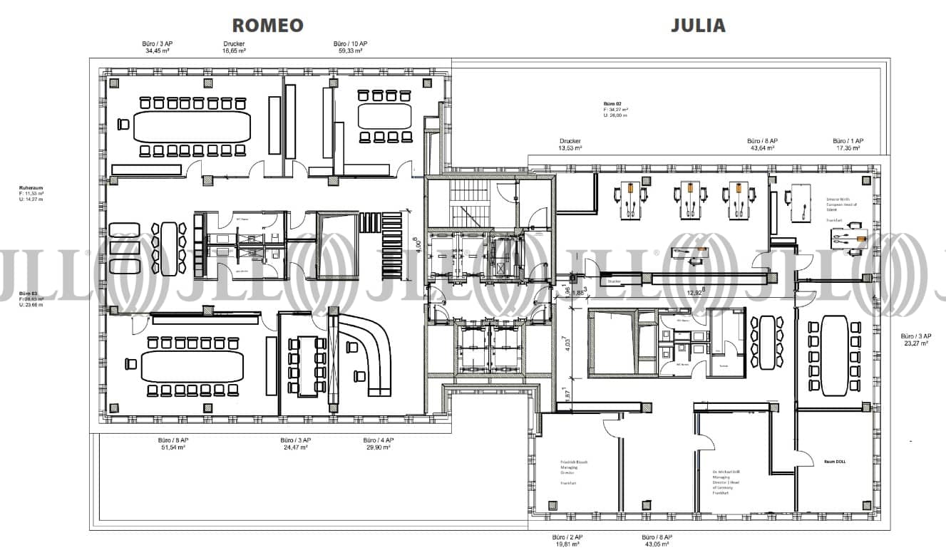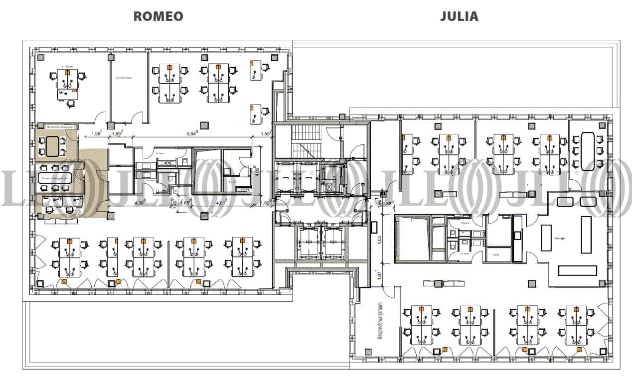 Romeo und Julia sind zwei Türme, die über einen gemeinsamen Kern mit Erschließungsfunktion verfügen und durch einen Sockel vereinigt werden. Auf den insgesamt 19 Etagen bietet das hochmoderne Gebäude ca. 14.500 Quadratmeter für hochwertige Büros. Das Gebäudeensemble verfügt über moderne energieeffiziente Haustechnik sowie eine ökologische Doppelfassade mit raumhohen Glasflächen.