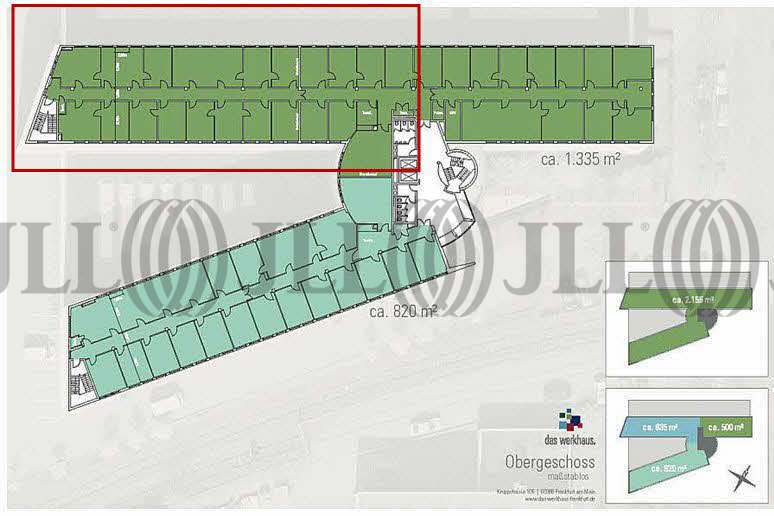 Das werkhaus bietet dank seiner zwei Gebäudeflügel eine flexible Aufteilung sowie eine gute Darstellbarkeit auch für Mieter mit einem Flächenbedarf von weniger als 1.000 m². Über den zentralen Eingangsbereich gelangt man durch das Treppenhaus via zweier Aufzugsanlagen in die jeweiligen Büroetagen, wobei sich die Büroflügel links und rechts davon erstrecken.