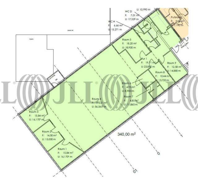 Bei der Liegenschaft handelt es sich um ein 4-geschossiges Büro- und Geschäftsgebäude. Dem Bürogebäude angeschlossen ist ein Gewerbehof u.a. mit Mietern aus der Werbemittelbranche und Freizeit. Bei Bedarf steht im Gewerbehof zusätzliche Gewerbe-/Lagerfläche zur Verfügung.