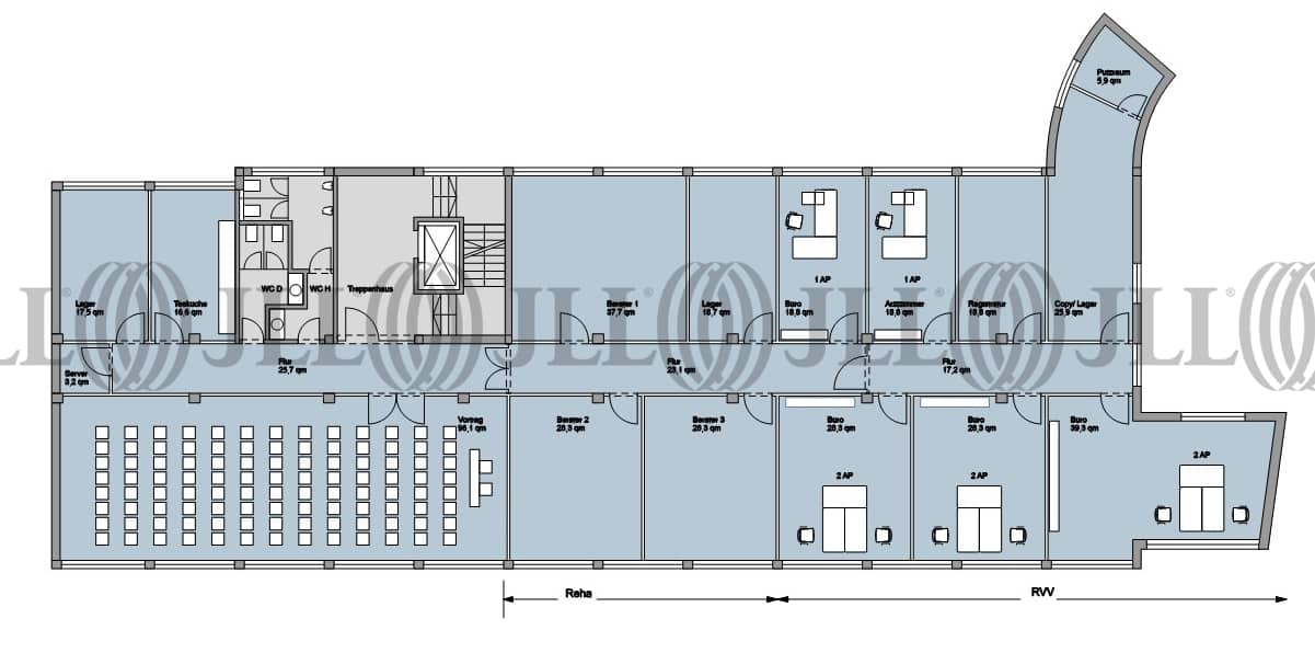 Bei der Liegenschaft handelt es sich um eine 5-geschossiges Büro- und Geschäftshaus mit einer Natursteinfassade. Der Stellplatzschlüssel beträgt 1 Stellplatz/42 m² angemieteter Bürofläche.