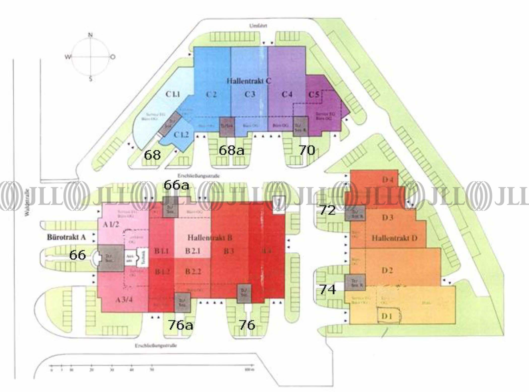 Der repräsentative Gewerbepark besteht aus drei einzelnen Gebäudeteilen, die jeweils über Büro- und Hallenflächen verfügen. Die Büro-, Service- und Lagerflächen können in unterschiedlichen Mietflächen aufgeteilt werden. Die Bürotrakte sind zu den Andienungszonen angeordnet. Im Bereich der Obergeschosse befinden sich überwiegend die Büroflächen. Die Büroräume können ebenso wie die Hallenschiffe den jeweiligen Mieterwünschen entsprechend aufgeteilt und im Obergeschoss bei Bedarf miteinander verbunden werden.
