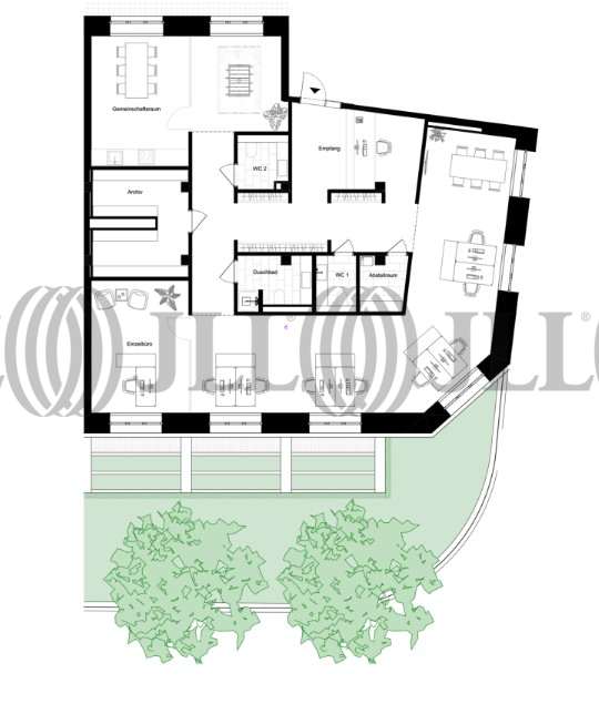 Die stilvollen Büroflächen bieten nicht nur eine beeindruckende Architektur, sondern auch eine erstklassige Ausstattung, die keine Wünsche offen lässt. Das unter Denkmalschutz stehende Gebäude mit seiner historischen Jugendstil/Sandsteinfassade wurde 1910 erbaut und kürzlich einer umfassenden Sanierung unterzogen. Die großzügigen, weiß angelegten Räume mit hohen Decken, raumhohen Glaswänden und großen olivgrünen bzw. oxidroten Fensterrahmen aus Holz bieten eine agile und kreative Arbeitsumgebung kombiniert mit modernster Technik wie u.a. Telekom-Glasfaseranschluss für High-Speed Internet sowie eine vor konditionierte Be- und Entlüftung mit Sommer/Winter-Modus.
