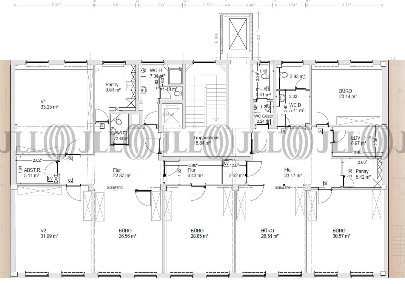 Das 6-geschossige Büro- und Geschäftshaus wird von dem repräsentativen Eingangsbereich aus über 2 Personenaufzüge erschlossen. Das 6. Obergeschoss wurde 2009 aufgestockt.