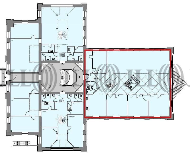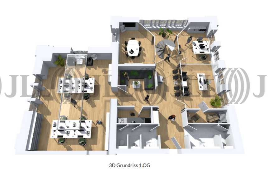 Das denkmalgeschützte Gebäude mit repräsentativer Backsteinfassade beherbergt außergewöhnliche Büroflächen, die sich durch ihr kreatives und kommunikatives Raumkonzept deutlich von konventionellen Büroimmobilien abheben. Hochwertiger Parkettboden verleiht den Räumlichkeiten eine repräsentative Atmosphäre und unterstreicht das helle, einladende Raumambiente.