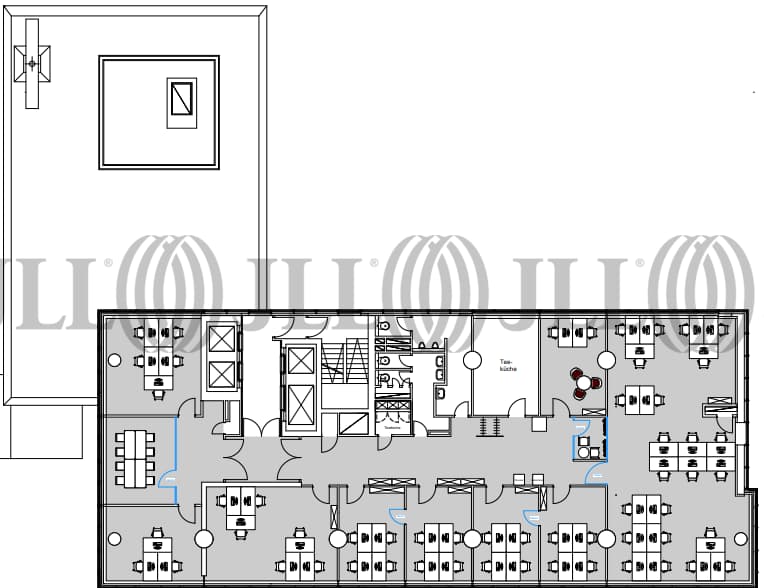 Das markante Eckgebäude liegt direkt am Barbarossaplatz – einem zentralen Knotenpunkt Kölns. Die Gebäudestruktur bietet moderne Büroflächen in mehreren Obergeschossen, optional teilbar und geeignet für Einzel- oder Doppelbüros plus Aufenthaltsbereiche.