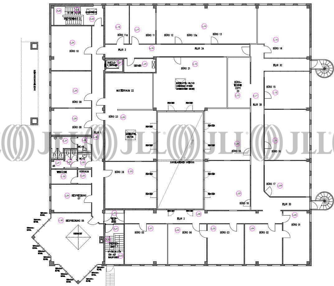 Das 2 geschossige Gebäude mit Souterrain, erbaut 1989, verfügt über effiziente und kommunikative Büroflächen, welche individuell gestaltet werden können. Die Ausstattungsmerkmale entsprechen den heutigen Anforderungen an einen modernen Büroarbeitsplatz. Das Objekt verfügt über eine objekteigene Tiefgarage sowie über eine Einbruchmeldeanlage; die Alarmierung erfolgt über eine Alarmweiterleitung auf eine ständig besetzte Stelle.