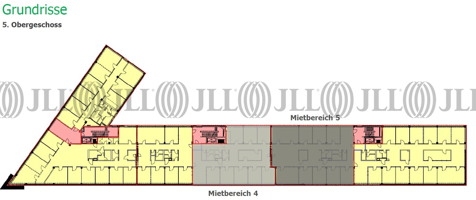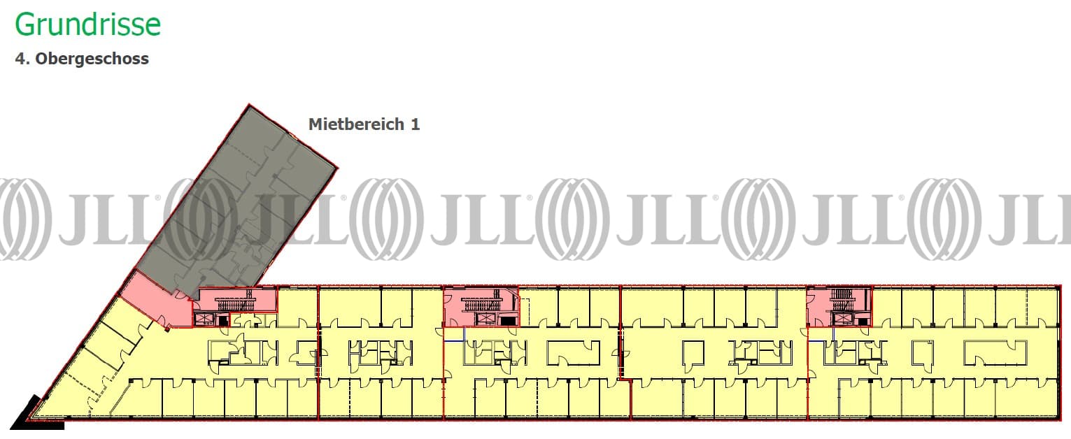 Das sechsgeschossige Objekt bietet eine moderne Architektur mit viel Glas und einer klaren Fassadengestaltung. In der markanten, durch horizontal auskragende Sonnenschutzblenden akzentuierten Gebäudespitze befindet sich die große, repräsentative Empfangshalle. Von hier aus, sowie über zwei weitere Erschließungskerne, erreicht man bequem die oberen Etagen. Die symmetrischen Grundrisse, zusammen mit den flexiblen Trennwandsystemen aus Wandpaneelen und Glaselementen, bieten viele Möglichkeiten einer flexiblen und individuellen Gestaltung der Büroflächen. Der Ausstattungsstandard entspricht dem heutigen Anspruch an eine moderne Büronutzung.