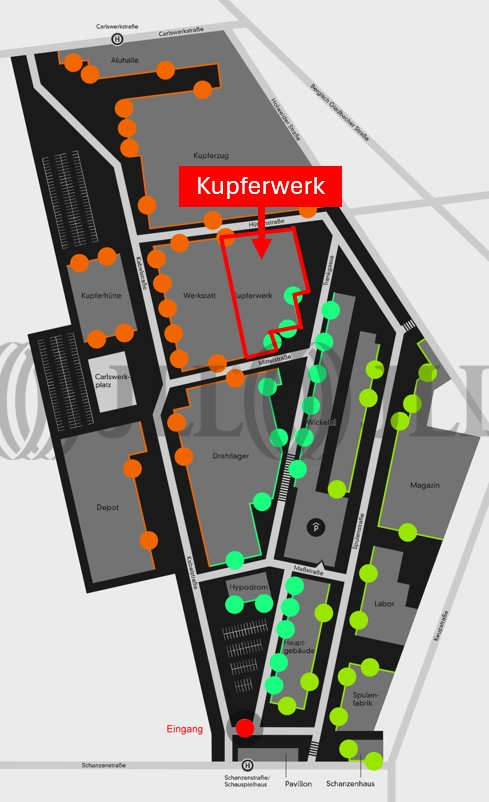 Das Kupferwerk auf dem inzwischen stadtbekannten Carlswerk wurde 2018 hochwertig modernisiert. Hohe Sichtbetondecken verleihen den Räumen einen loftartigen Charakter.