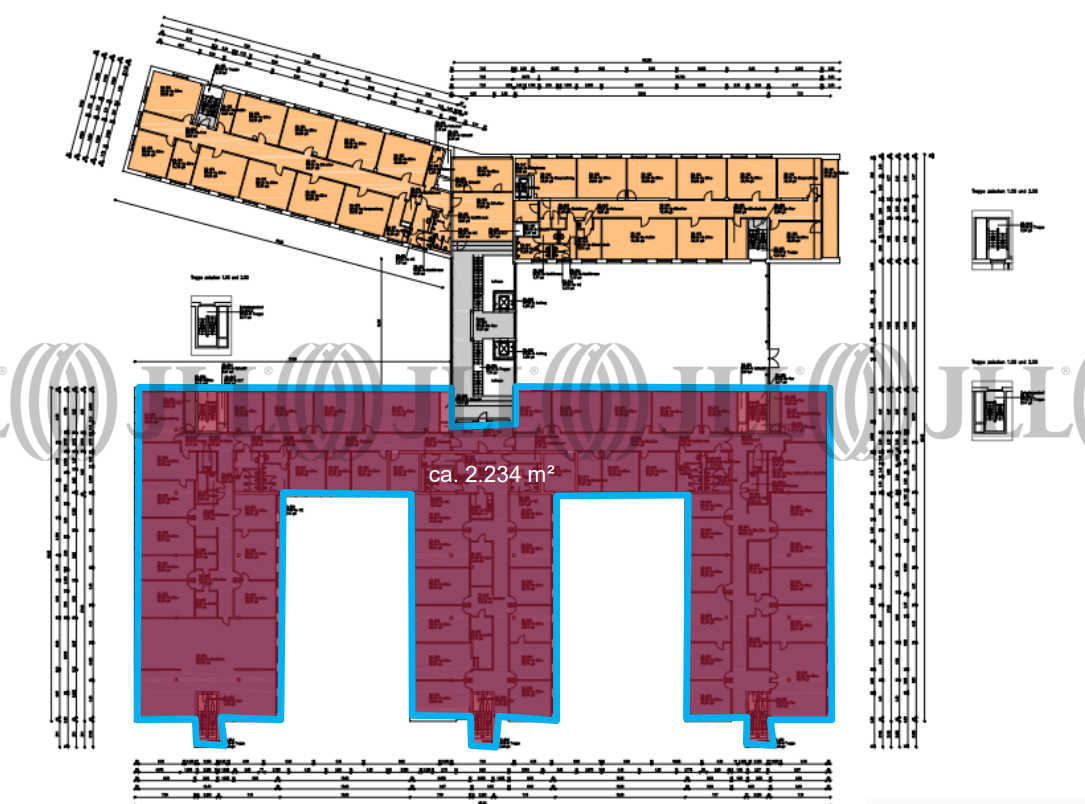 Das repräsentative Bürogebäude verfügt über eine eindrucksvolle Vorfahrt zum Haupteingang und hat einen ungestörten Blick auf den Rheinauenpark sowie das Siebengebirge. Das Gebäude erstreckt sich auf insgesamt rund 12.500 m² Nutzfläche, welche sich auf 5 Gebäudeteile und 4 bzw. 5 Geschosse mit Tiefgarage verteilt. Die Fläche im Objekt ist flexibel auf die Mieterwünsche anpassbar und besitzen zusätzlich zum Haupteingang einen separaten Zugang von draußen.