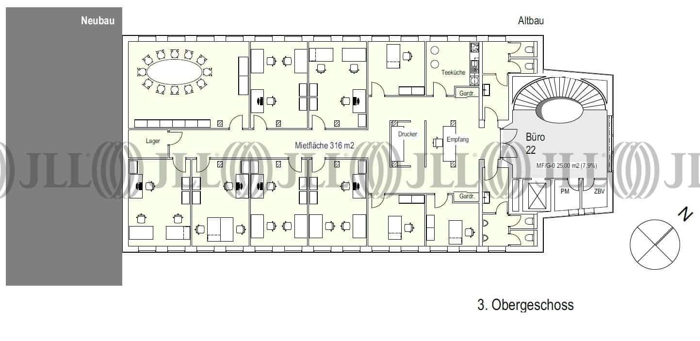 Das Objekt liegt direkt am inneren Grüngürtel, welcher zum Entspannen einlädt. Das Bürogebäude besteht aus einer Natursteinfassade und der Eingang zum Gebäude befindet sich am Kopfende. Im Treppenhaus befindet sich eine geschwungene Treppe, sowie der Aufzug, welcher die Etagen miteinander verbindet. In den Büroflächen sind die WC-Anlagen und Teeküchen platziert. Die Büroflächen können individuell aufgeteilt werden. Der Flur befindet sich mittig, sodass links und recht jeweils Büroräume abgetrennt werden können.