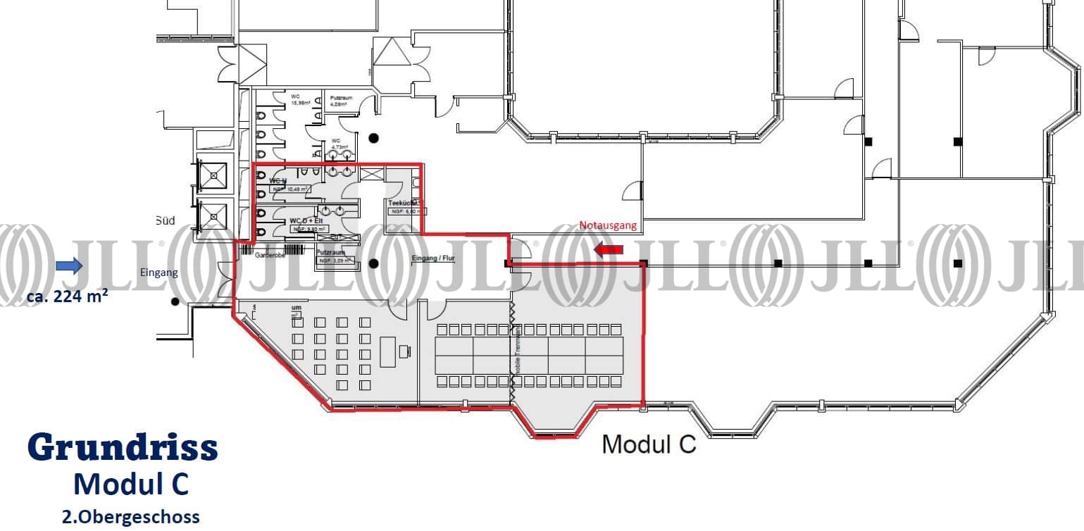 Das Bürogebäude besteht aus vier Modulen, die durch Zwischenmodule erschlossen sind. Außerdem verfügt das Objekt über einen neu gestalteten Innenhof, eine energie- und kostensparende Geothermie Heizung und eine attraktive Dachterrasse im DG.
