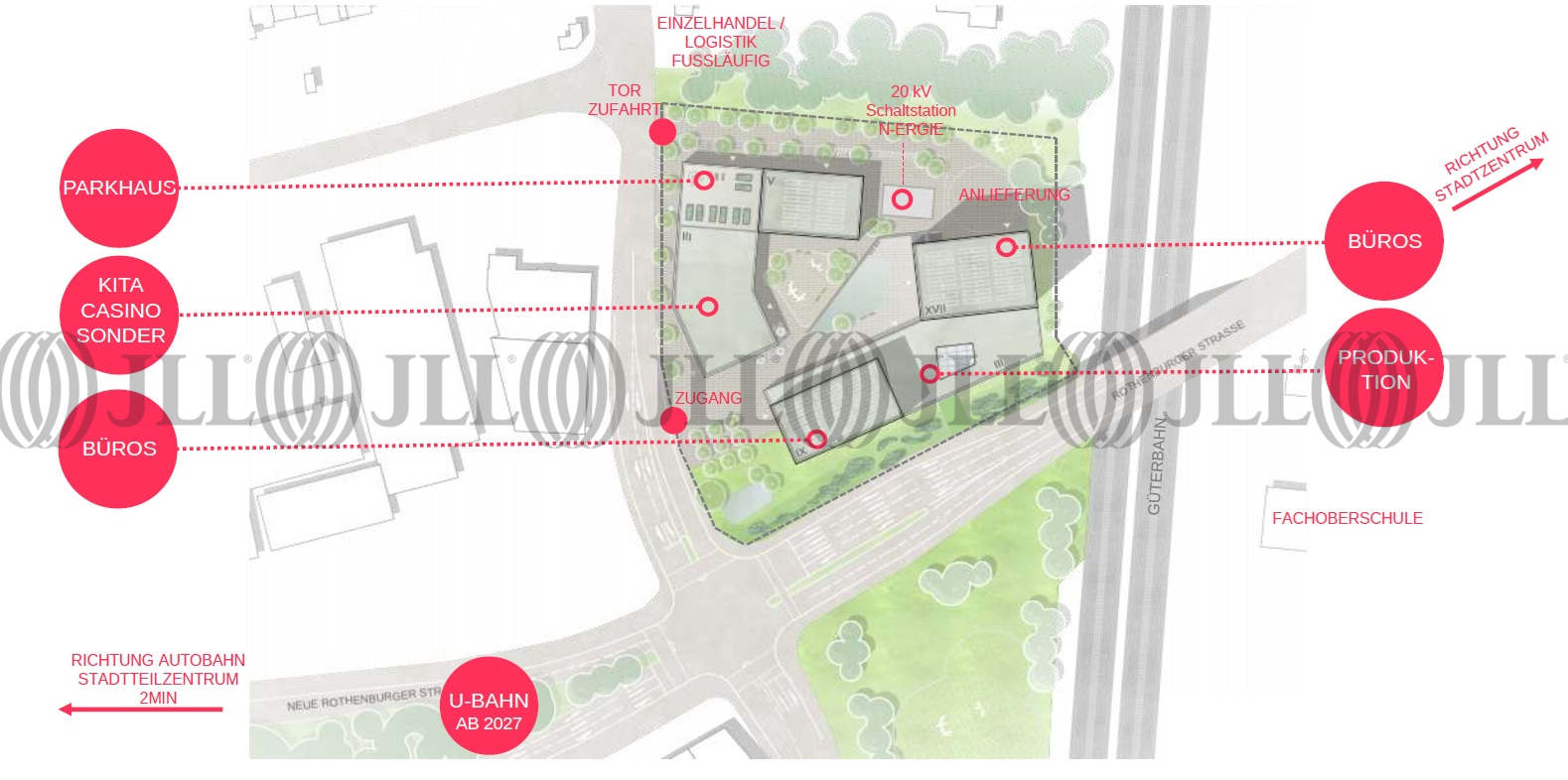 Quartier. Durch die direkte U-Bahn-Anbindung und noch weitgehend offene Planungsgrundlagen steht das Gebäude einem attraktiven Gewerbemix zur Verfügung.