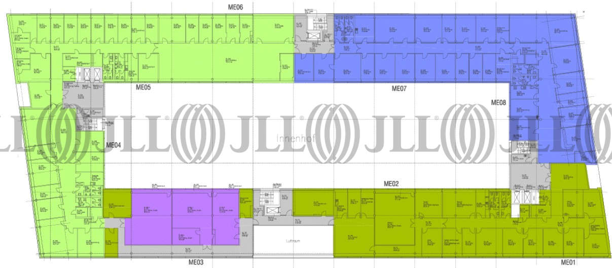 Das 2003 erbaute Bürogebäude verfügt über eine Vollglasfassade und ist um einen begrünten Innenhof in 2-hüftiger Bauweise angelegt. Über vier separate Eingangsbereiche mit Natursteinböden werden die oberirdischen Etagen erschlossen. In den kurzen Gebäudelängen befindet sich jeweils ein großes Treppenhaus mit je 2 Aufzugsanlagen, während sich in den beiden langen Gebäudeteilen jeweils mittig gegenüberliegend ein Treppenhaus mit einer Aufzugkabine befindet. Die Raumaufteilung der einzelnen Etagen ist variabel gestaltbar.