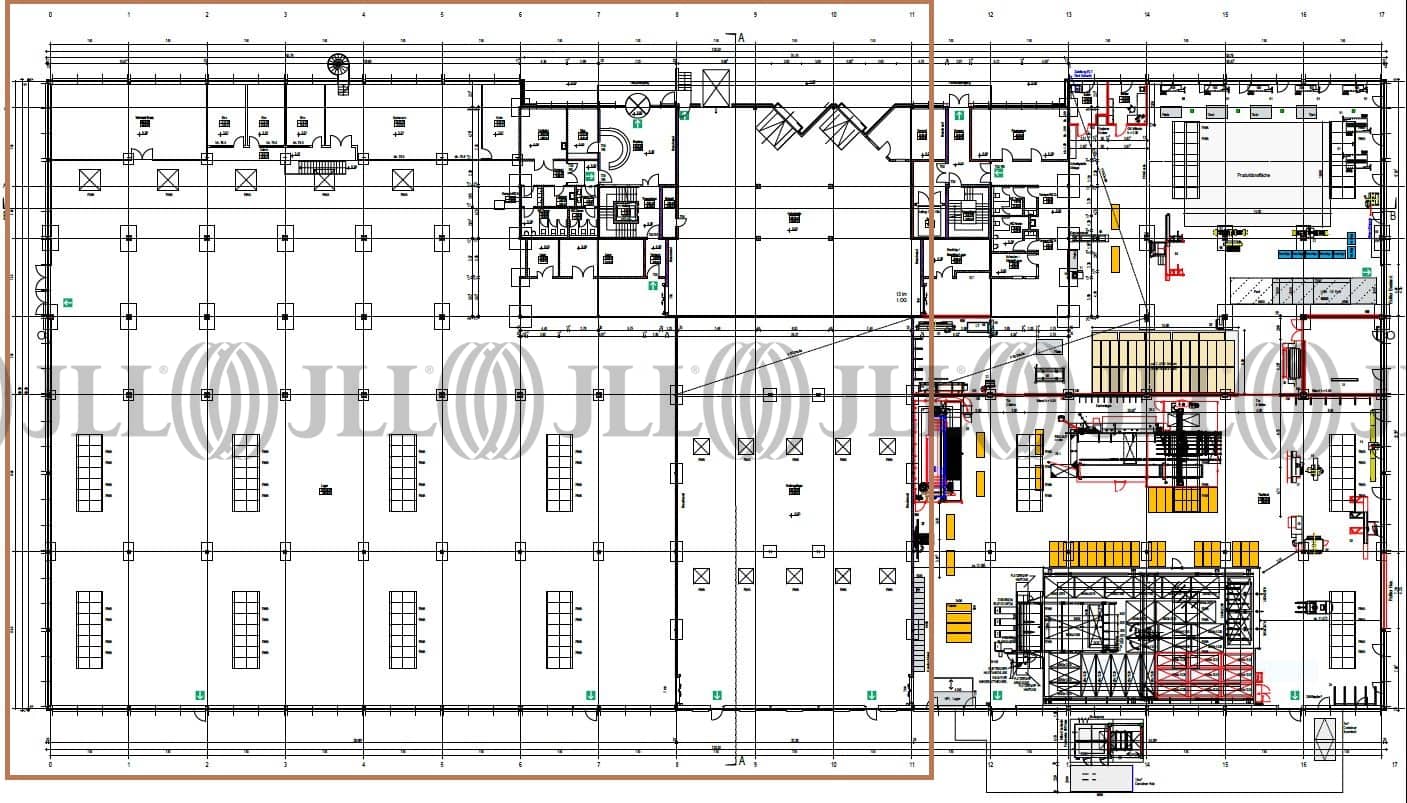 Hochwertiger Gebäudekomplex aus Produktionshallen, Büros und Medien-/Heizhaus mit Baureserve. Ursprünglich als Produktions- und Verwaltungsstandort einer Druckerei und Buchbinderei errichtet. Hauptgebäude und Medienhaus wurden 1995 errichtet und sind mit Flachdächern versehen. Auf dem Grundstück befinden sind zusätzlich 132 Pkw-Parkplätze sowie eine Schrankenanlage.