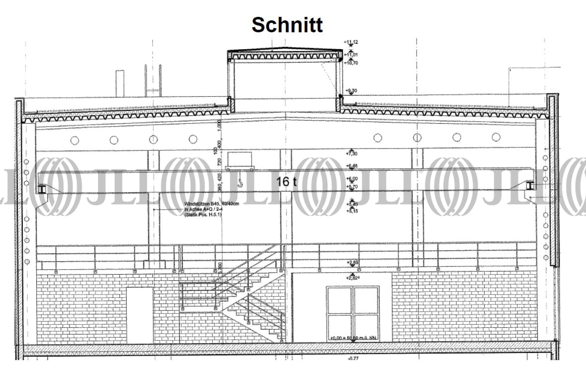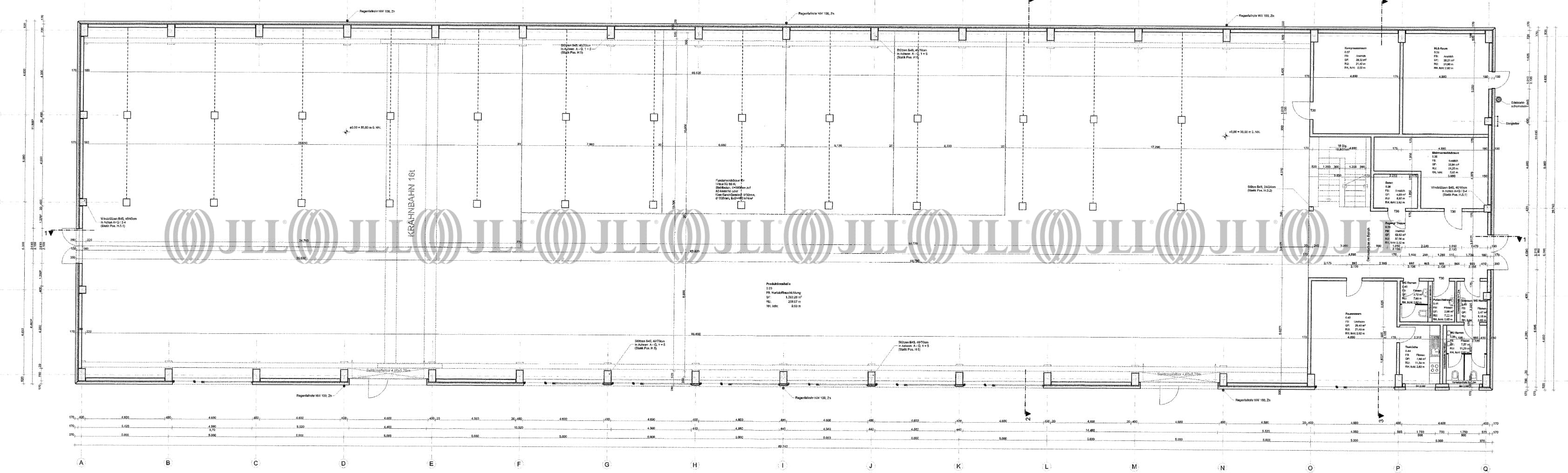 Die Halle hat einen knapp 1.400 m² Hallenfläche, freitragend, 7,30 m UKB hoch und ist überspannt mit einem 16t-Brückenkran (Höhe unter Haken 5,70 m).