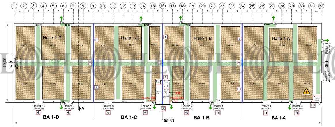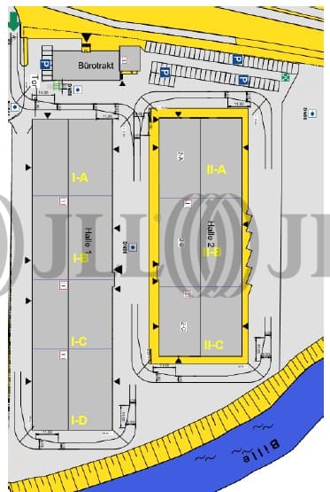 Diese Industrieimmobilie in Billbrook bietet in Halle 1 ca. 6.212 m² Logistikfläche mit strategischer Lage im Hamburger Logistik- und Industriecluster. Halle 1 zeichnet sich durch ungefähr 6,30 Metern lichter Höhe und 8 ebenerdigen Andienungen für effizienten Warenumschlag aus. Die als Schnittstellen fungierenden Meisterbüros und Sanitärkerne legen eine Kombination aus den Abschnitten A/B, beziehungsweise den Abschnitten C/D nahe. Die Büro- und Sanitärflächen werden durch den Eigentümer saniert.