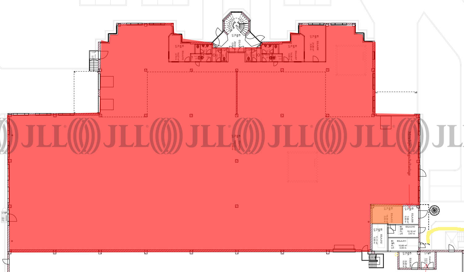 Das Objekt verfügt über insgesamt 5.900 m² hochwertige Büro- und Verwaltungsflächen, welche entsprechend den Anforderungen des Nutzers ausgebaut werden können. Im Erdgeschoss befinden sich variabel aufteilbare Hallen- und Serviceflächen mit einer Gesamtfläche von ca. 7.500 m². Zudem besteht die Möglichkeit im mittleren Bereich des Grundstücks zusätzlich ca. 1.500 m² Hallenflächen anzubauen.